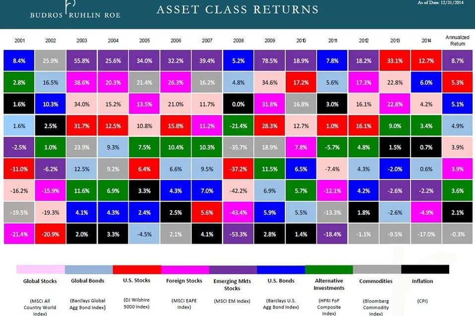 For starters, it is a little silly that they've broken stocks down into Global, US, Foreign and Emerging Markets because these categories are not mutually exclusive. The other three sort of add up to "Global" but they omit Canada, and they're market cap weighted instead of GDP weighted. Further, there are a lot of big US and "Foreign" stocks that get the majority of their revenue in other countries and in some cases mostly from emerging markets. Don't be tricked into paying expensive fees for emerging markets exposure when you can get it less expensively through US stocks and ETFs. In fact, this is one of Jack Bogle's 4 Rules of Investing.