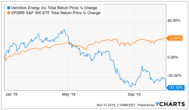 Vermilion Energy is global oil and gas producer based out of Canada. It pays a big, healthy, monthly dividend, and the shares trade at an attractively discounted price, especially after this year’s sell-off (which accelerated after a disappointing earnings announcement this past week, whereby management announced they’d be reducing capex spending).