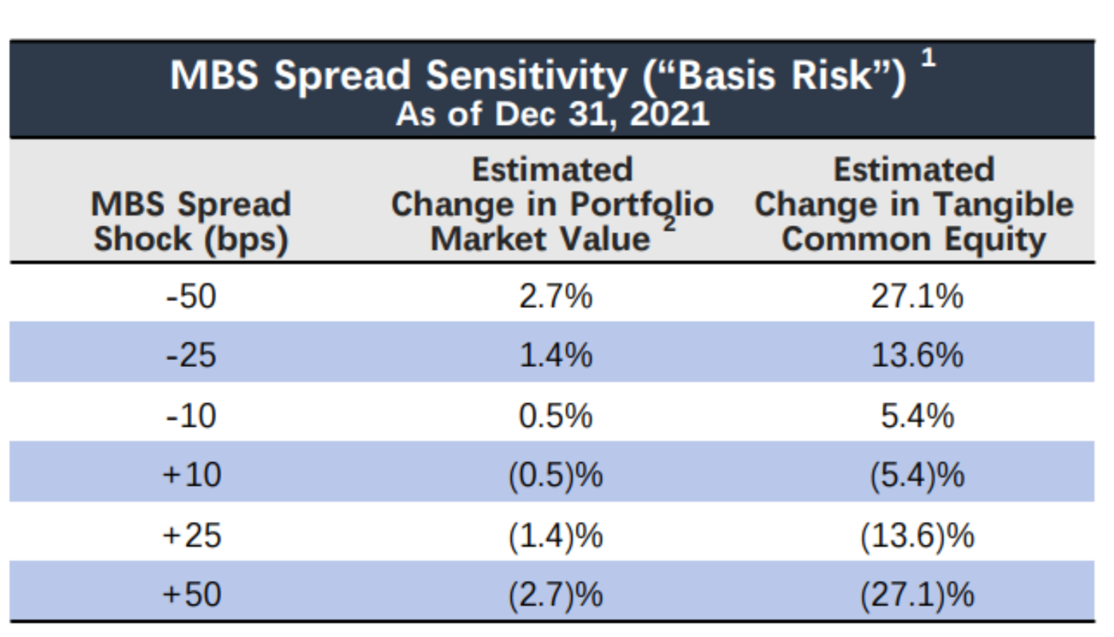 To understand AGNC’s interest rate risks, think of it as a bond fund (because it basically owns a bunch of agency-backed mortgage bonds) and when interest rates go up (like this year)—bond fund prices go down (like this year). For example, here is a look at a graphic from AGNC back at the end of 2021 (before all the interest rate carnage began).