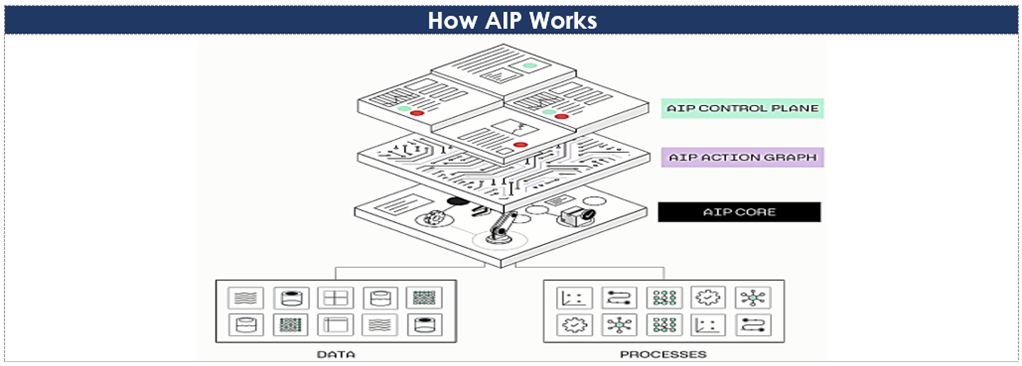 Palantir has introduced two versions of the Artificial Intelligence Platform (AIP): AIP for Defense and AIP for Business, with plans for a phased launch. AIP prioritizes compliance with legal and ethical guidelines when deploying powerful AI tools and Large Language Models (LLMs). It consists of three pillars: AIP Core for smooth deployment across diverse networks, AIP Action Graph for robust security features and governance, and AIP Control Plane for secure digital records of operations. AIP seamlessly integrates with existing platforms like Gotham and Foundry, enabling customers to make intelligent decisions, implement advanced automation, and gain strategic advantages. Palantir aims to deliver value quickly and make a meaningful impact through AIP.