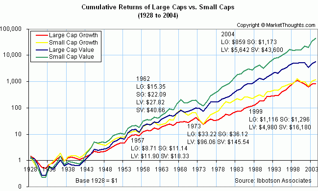 For example, Eugene Fama, the most often quoted person in economic/investment research papers, has proven and shown this decades ago (and continues to prove it in more recent papers) through his three factor model (small cap is one of the factors). Also, as the following charts show, small cap and value have continued to crush large cap over the long-term.