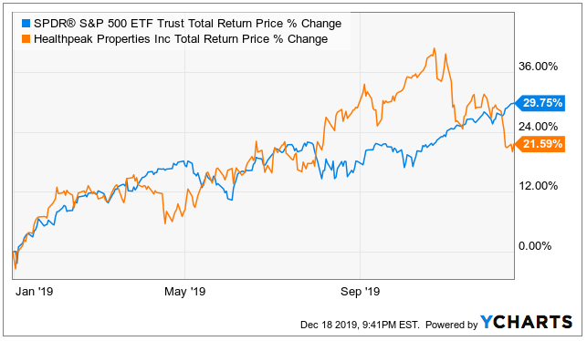 If you don’t know, HealthPeak is the old HCP Inc (it recently announced a name change at the end of October), and we continue to own the shares of this healthcare REIT within our Blue Harbinger Income Equity portfolio. HCP was formerly a dividend aristocrat (an S&P 500 company that has increased its dividend payout for at least 25 year straight), but ran in to some troubles with one of its big skilled-nursing facility operator a few years back, and forced to cut its dividend. It eventually spun out the troubled operator to give itself a fresh start, and has done an excellent job restructuring itself back into a healthy growing business with a very healthy dividend payout. However, HealthPeak also got caught up in the recent indiscriminate REIT sell-off, and the shares are attractively priced now for income-focused investors.