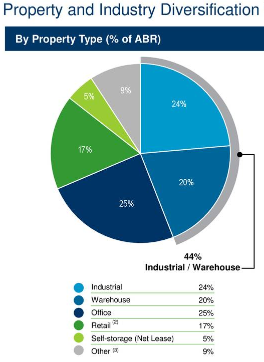 Monmouth is an Industrial REIT that has experienced some selling pressure in the last month (as part of the overall indiscriminate REIT sell-off). However, we believe it remains a very compelling dividend with attractive price appreciation potential considering it is trading at a discount. Further, it has attrative long-term leases with investment-grade tenants.