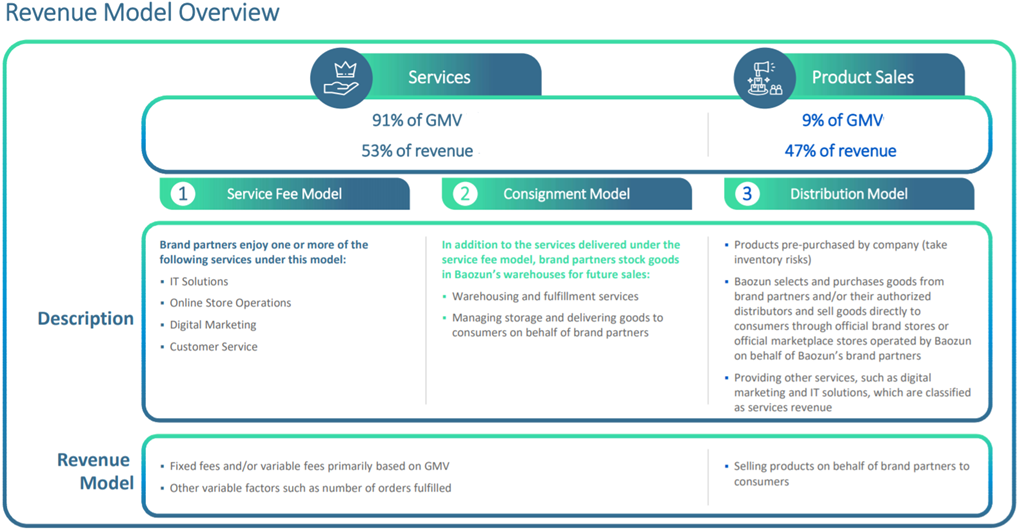 Service fee model: BZUN provides a variety of e-commerce services, such as IT solutions, online store operation, digital marketing, and customer services to brand partners;