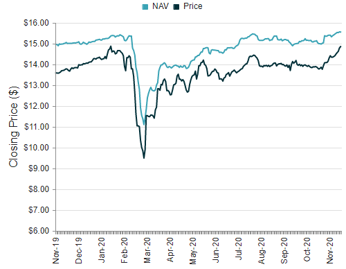 BTZ holds fixed income securities including mainly corporate bonds but also bank loans and convertible bonds, to name a few. And it’s also well diversified across bond issuers and maturity dates. Also, the share price has moved past the distress of the covid-induced bond market liquidity crisis earlier this year (as you can see in the chart above—Feb/March sell off) as the US Fed appropriately pumped massive liquidity into the bonds market. It also kept paying a big healthy steady dividend throughout the price volatility (very important if you are investing for the income). Furthermore, it is managed by BlackRock, a trusted firm with vast resources and expertise. You can read more about the important details of this closed-end fund in our new detailed write-up here.