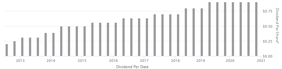 Realty Income is one of the most renowned dividend stocks. Its monthly dividend track record has earned it the nickname ‘The Monthly Dividend Company’. It has made 604 consecutive monthly payments and raised its dividend for 94 quarters in a row. Since March 2020 (when COVID-19 hit the world), the company has raised its dividend twice. This highlights the recession-resistant nature of its property portfolio and superior management skills. The company will sail through this crisis as well like it has in the past. From a pure income and capital preservation perspective, Realty Income is an outstanding option for investors to consider. You can read our latest Realty Income report here.