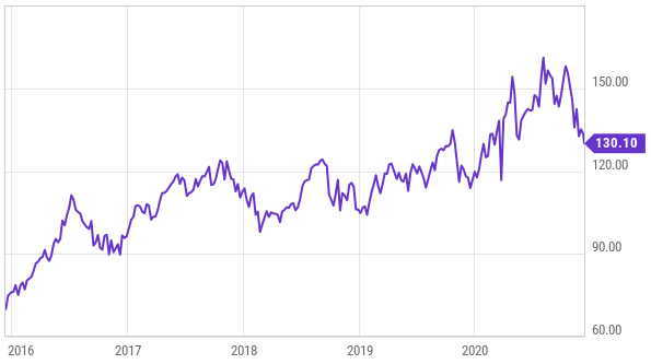 On a Price to Adjusted Funds from Operations basis (“AFFO”) basis, DLR is reasonably priced relative to its peer group average. As seen below, DLR trades at P/AFFO multiple of 23.4x, which is almost in line with its peer group average multiple of ~22.5x. DLR’s stock price has fallen nearly 18% over the past two months despite improving business fundamentals (DLR expects mid-single digit earnings growth in 2021). We think there is meaningful room for capital price appreciation given the disconnect between market price and business fundamentals. This provides investors with an attractive entry point.