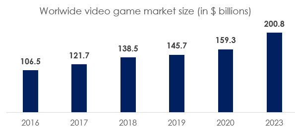 Video games industry is expected to continue its strong upward trend in the coming years growing at a CAGR of over 8% to reach over $200 billion by 2023 with mobile gaming consistently outperforming other platforms.