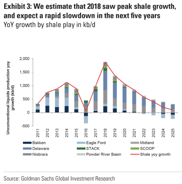 Further, some analysts expect a dramatic slowdown in shale production (i.e. new technology we mentioned earlier), which was a major driver of energy price declines, and could therefore provide more strength to prices going forward—a good thing for the fossil fuel industry.