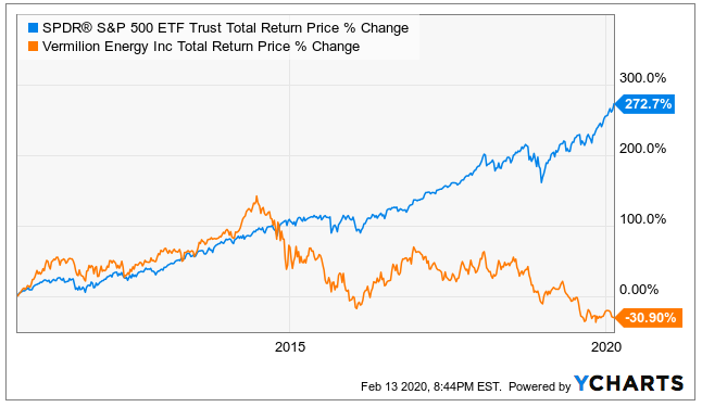 With a yield this big, it’s bound to have some warts on it, but it made our list for its attractive cash flow power and the sharply discounted price. If you don’t know, Vermilion is a Canada based, global oil and gas producer with operations in North America, Europe and Australia. The company’s stock trades both in Canada as well as the US.
