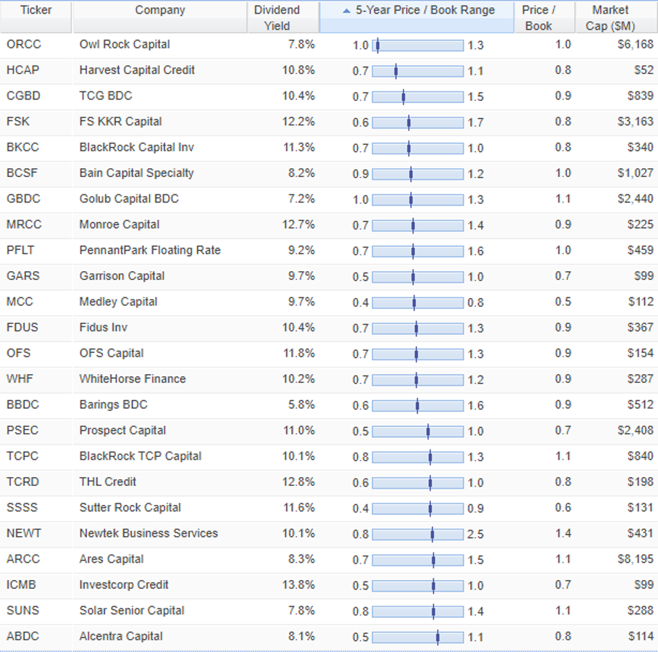 As they are traded on stock exchanges, period of volatility can lead to shares of BDCs trading at attractive discounts to NAVs.