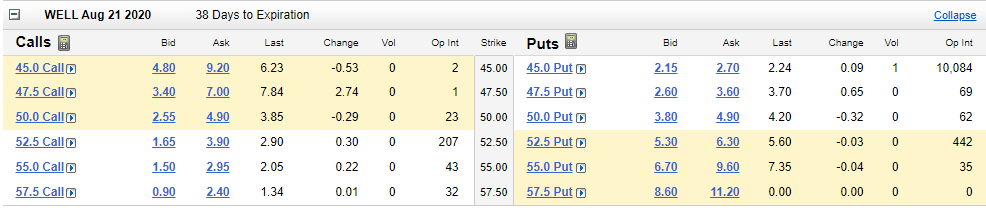 We believe this is an attractive trade to place today and potentially over the next few days as long as the price of WELL doesn't move too dramatically before then, and as long as you’re able to generate annualized premium (income for selling, divided by strike price, annualized) that you feel adequately compensates your for the risks (currently 50%+).