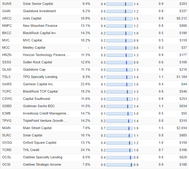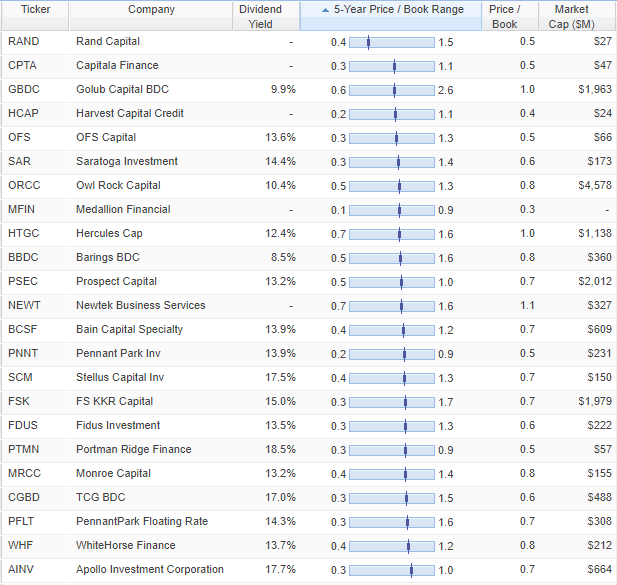 Some investors may argue that now is a great time to simply buy the cheapest BDCs on a price-to-book value basis (P/B is a common BDC valuation metric), but we disagree (especially considering current market conditions). For example, book values are generally reported only quarterly, and many of them have changed dramatically since the last batch of quarterly reports were released (we cover attractive specific examples later in this report). Further still, some BDCs should trade at higher valuations considering the differing qualities of their businesses.