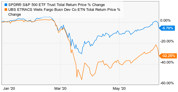 If you don’t know, BDCs provide capital (usually loans, sometimes equity capital) to smaller middle market businesses (i.e. companies with annual revenues usually between ~$10 million and ~$500 million). These may not sound like small businesses to you (they’re certainly not “mom and pops,” nor are they trillion dollar tech companies), but they are mainly smaller private businesses, and many of them have been hit particularly hard by the coronavirus lock downs.