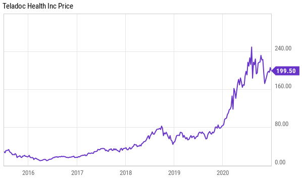 Teladoc provides virtual healthcare services on a business-to-business basis, and revenues have been growing extremely rapidly. The total addressable market is massive, and the company’s leadership position has become even more dominant following the recent merger with Livongo.