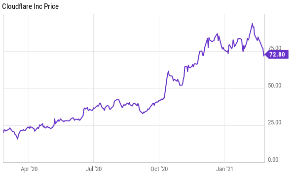 Cloudflare (NET) is an attractive internet infrastructure and security company (i.e. a top growth stock) that has been increasing revenues very rapidly and has a very large total addressable market (for continued high growth in the long-term).
