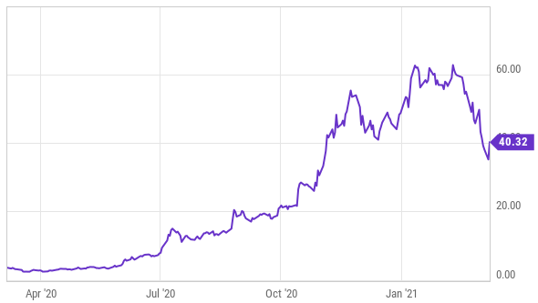NIO shares have posted powerful gains over the last year, despite the pandemic challenges, and they now trade at over 19 times sales, as you can see in the chart below.