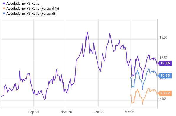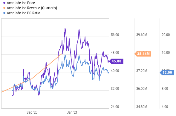 In terms of the valuation, Accolade trades at a premium with a Price-to-Sales ratio of 12.6x which is robust, but healthy. In our view, however, the valuation is justified given the high growth rate and large TAM (espcially as economies of scale continue to kick in and margins continue to improve). Not to mention an attractive industry tail wind due to the pandemic, as well as the constant challenge of navigating health care (which Accolade helps with and makes easier).