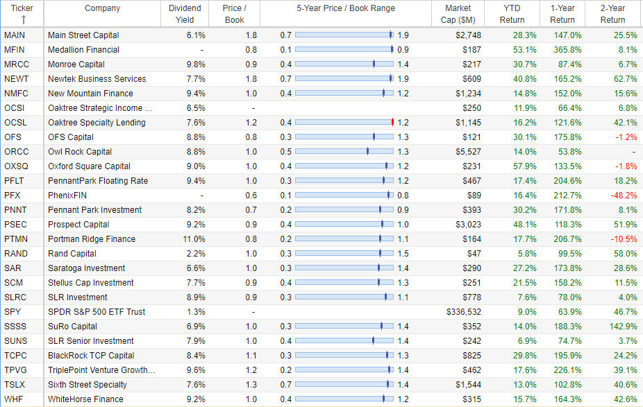 Also, on a comparative basis with other large BDCs (with over $1 billion in market capitalization), ARCC’s P/BV is slightly on the higher side.