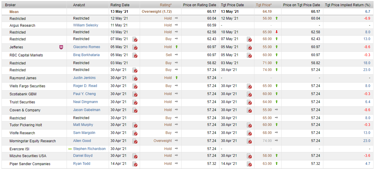 With inflation on the rise, the pandemic trade continuing to unwind, and growing momentum on the side of value plays, Exxon Mobil looks good. The company announced expectation-beating Q1 earnings back on April 30th (they beat on earnings and revenues), and since that time Wall Street analyst price target increases have been rolling in (see below).