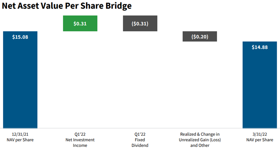 “Our NAV (or book value) per share was $14.88, down modestly from the fourth quarter, reflecting a decline in the fair value of our portfolio due to the impact of wider credit spreads in the market.”