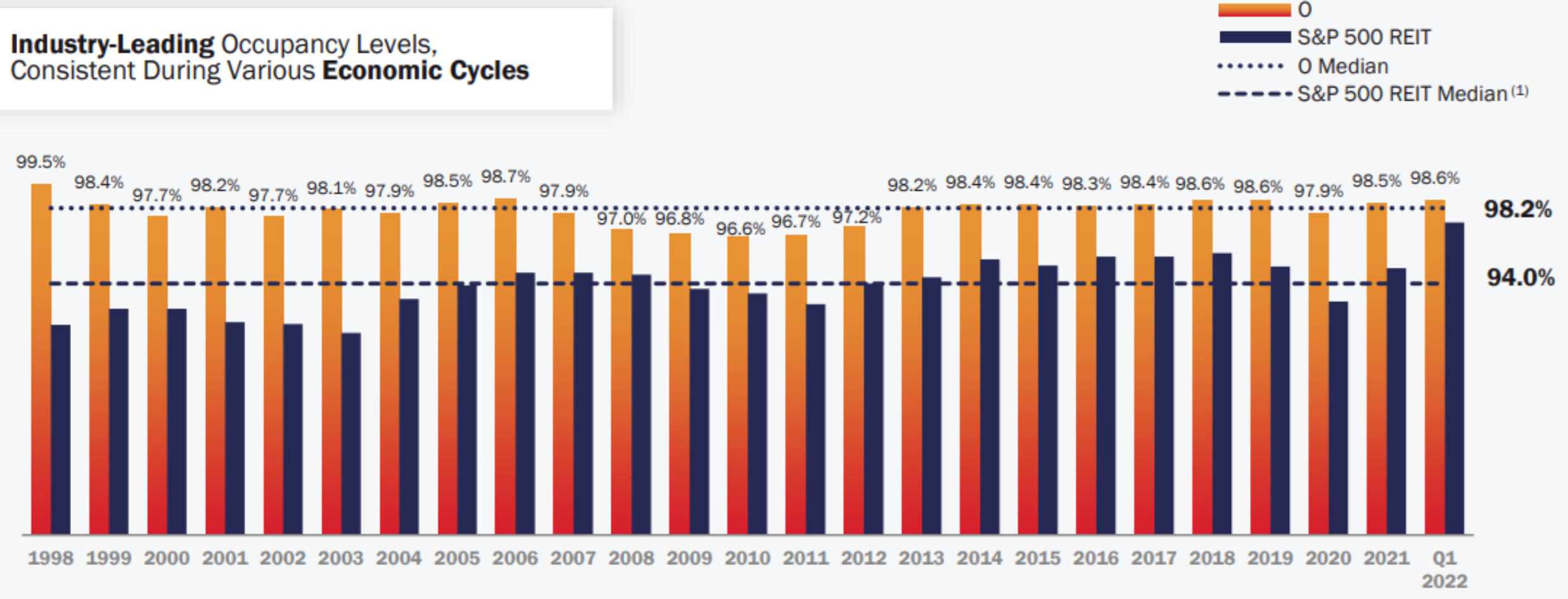 And it has the financial wherewithal to do this (for example, Realty Income is one of only seven U.S. REITs with two A3/A- ratings or better). Plus the environment remains attractive for such a strategy considering the market is highly fragmented and because this year’s economic challenges may leave increasing acquisition targets in some distress (i.e. a better time to get good deals on potential acquisitions).