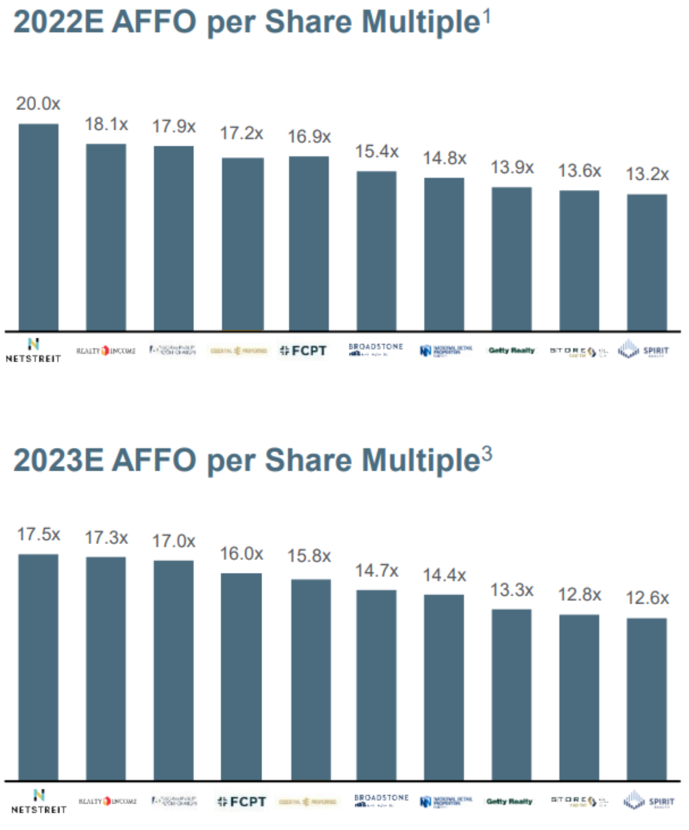 Here is a look at Realty Income’s price-to-FFO multiple as compared to peers.