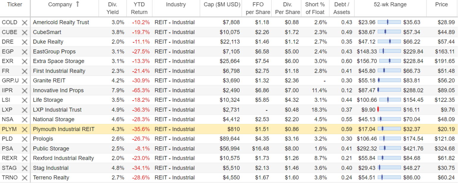 Interesting to note, after years of very healthy performance, industrial REIT share prices have been hit particularly hard this year (as compared to other REITs) as the temporary accelerated growth due to pandemic supply chain needs recede. However, the long-term outlook for the industry remains strong (and share prices in general are now lower, including Plymouth).
