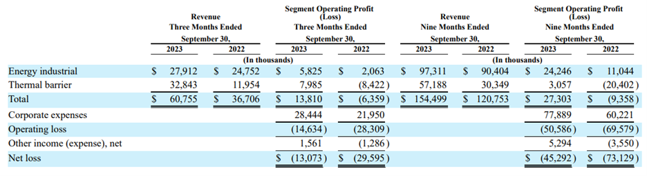 “We maintain our full longer term upside potential as we continue to win design awards from EV OEMs to expand our profitable base load of energy industrial revenue and to leverage our aerogel technology platform into additional high value markets, including our ongoing work in battery materials.”