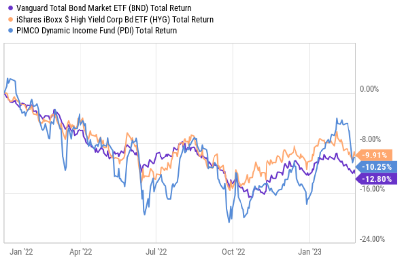 Bonds have been a disaster for many investors over the last year. As interest rates have risen, bond prices have fallen, and “safe” bond funds have delivered very negative returns (such as (BND) (HYG) and (PDI), to name a few, see chart below). In this report, we review a bond ETF that pays monthly, offers a 6.1% yield and avoids all the interest rate risk (i.e. if you hold it until maturity in December, your annualized yield to maturity will be 6.1%). We review all the important details and then conclude with our strong opinion on who should consider investing.