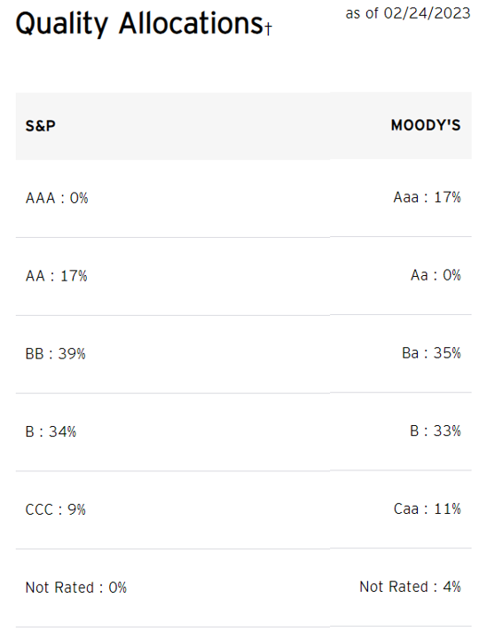 BSJN is focused on high yield bonds, which are considered riskier than investment grade bonds. Historically speaking, around 3.8% of all US high yield bonds default in a year. And for 2023, Fitch Ratings recently predicted around 2.5% to 3.5% will default. So if 3.0% of this fund defaults in 2023 (and goes to $0.00, which is unlikely, bondholders usually get cents on the dollar) then this fund’s yield would be reduced by 3.0% from 6.1% to 5.9%. And 5.9% is still a very good 1-year annualized yield-to-maturity. Realistically, this fund will likely have less than a 3.0% default rate considering the actual credit quality of the underlying holdings, as you can see in the charts below. For example, 16.88% of the fund is in US Government Securities (very safe) and a lot of the holding are rated “investment grade” (i.e. better than high yield).