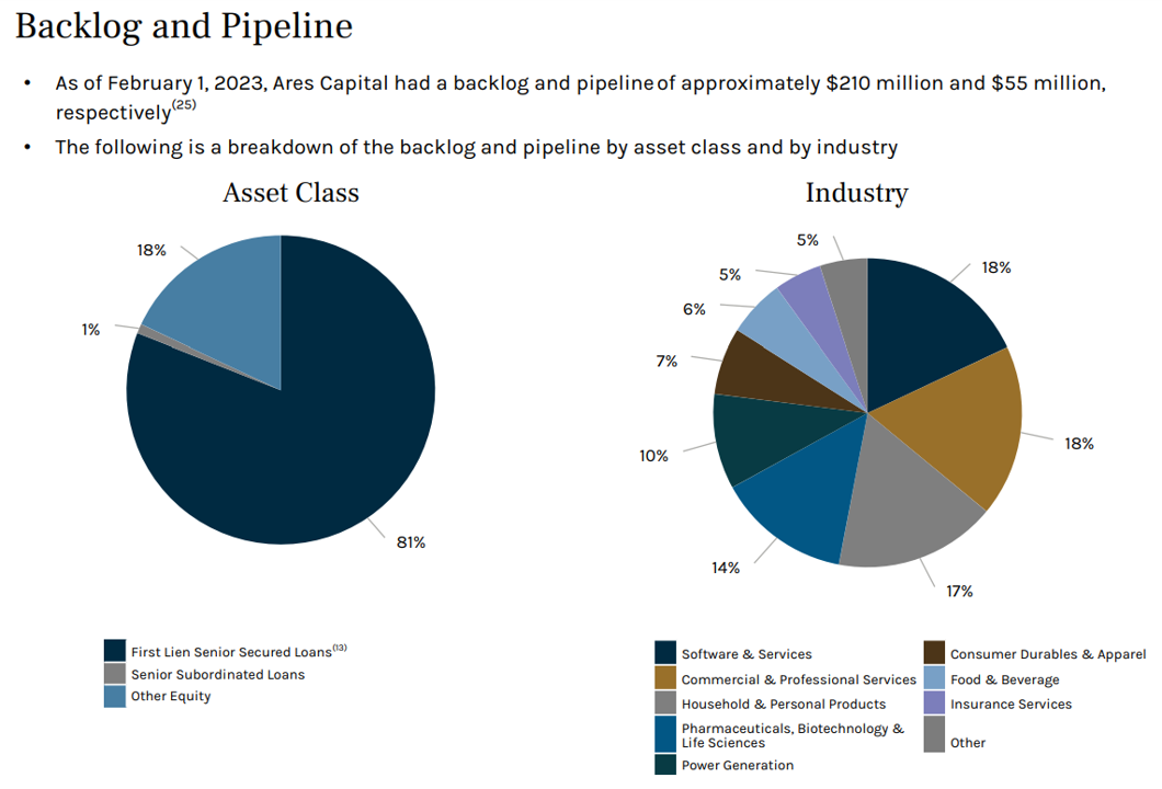 It is encouraging that Ares is able to issue new shares and also encouraging that the backlog and forward pipeline of investment opportunities remain healthy, as you can see in the following graphic.