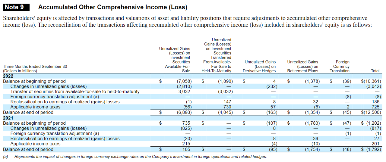 In fact, you can see below (also from the 10-K) for the three months ended September 30th, USB was already carrying very large unrealized losses related to available for sale securities, it’s just that those losses are ignored in certain capital ratio calculations because USB is not yet subject to GSIB requirements.