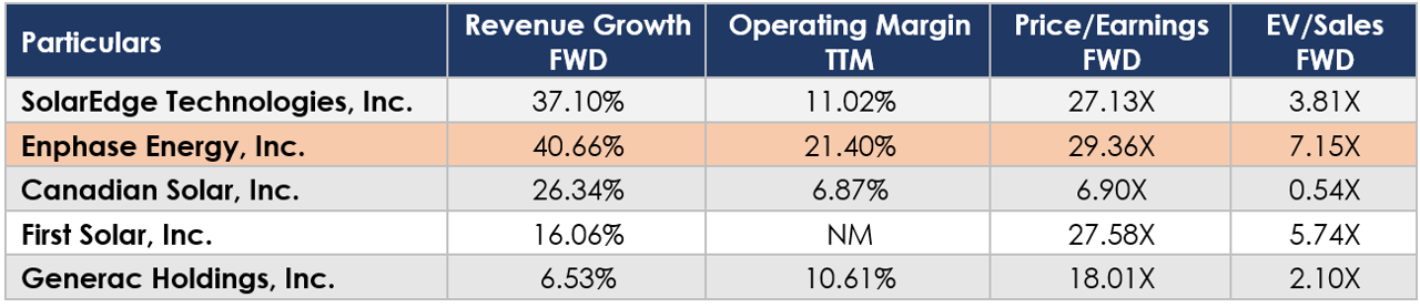 Intense competition: Enphase competes with SolarEdge, Fronius, SMA SolarTechnology, AP Systems, Generac, Tesla, Huawei, Ginglong, Sungrow, Solax, and Hoymiles, LG Chem, Sonnen, Generac, Panasonic, BYD, E3/DC, Senec, etc. To mitigate the competition risks, Enphase should focus on enhancing its product portfolio through innovation, maintaining strong customer relationships, investing in R&D, and expanding into new markets or product segments. Also, the increasing competition may result in pricing challenges for Enphase, necessitating the company to address them by employing differentiation strategies and optimizing costs.