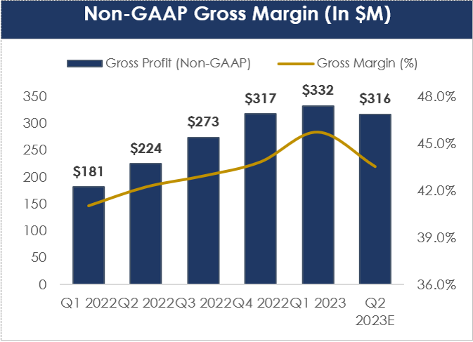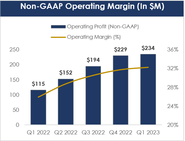 The company’s non-GAAP gross profit increased by 83% YoY to $332M, resulting in margin expansion of 470-bps YoY to 45.7% from 41.0% in Q1 2022. This growth was driven by factors such as a higher proportion of IQ8 products, price increases, cost management efforts in reducing freight costs, and strong performance in key markets, particularly in Europe and the US. In Q2 2023, the company projects a non-GAAP gross margin between 42.0% to 45.0%, translating into a 130-bps YoY expansion at the mid-point. On the operational front, Enphase reported non-GAAP operating profit of $234M in Q1 2023, up from $115M in Q1 2022, with margin increasing to 32.2% from 25.9% in Q1 2022, aligned with the top-line growth.