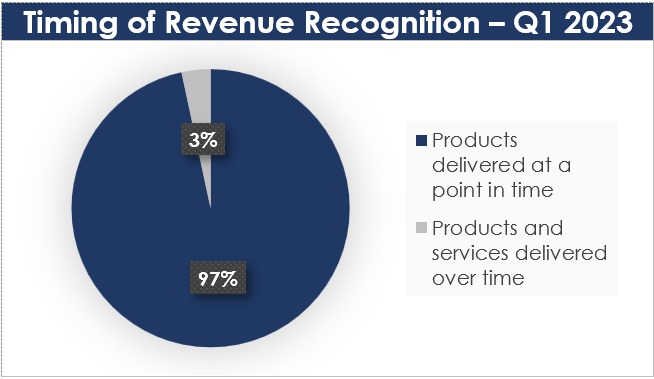 Enphase was initially established as PVI Solutions in 2006 and later rebranded as Enphase Energy in 2007. It specializes in the design and production of advanced microinverter systems for both residential and commercial solar applications. The company offers a cloud-based platform that streamlines solar generation, storage, and real-time monitoring of the systems. Its comprehensive product lineup includes IQ Microinverters, IQ batteries, Electric Vehicle (EV) chargers, and grid services. Enphase caters to distributors, large installers, Original Equipment Manufacturers (OEMs), and strategic partners. In Q1 2023, the company derived 97% of its total revenue from products delivered at a point in time whereas the rest was accounted by products and services delivered over time.