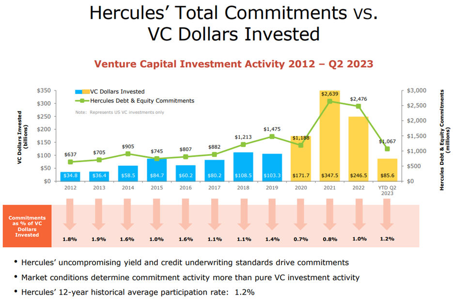 Another big event this year that impacts the industry in which Hercules operates, was the Silicon Valley Bank failure. If you recall, SVB was focused heavily on providing financing to venture/growth investors and that bank failed, thereby sending shockwaves throughout the market.