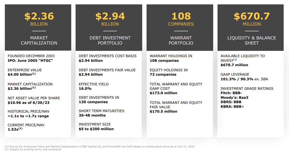 Hercules is unique because it is the largest BDC focused on high-growth and venture-backed businesses. It is also internally managed (this can help reduce expensive conflicts of interest, as compared to externally-managed BDCs). For reference, Hercules began trading publicly (on the New York Stock Exchange) when it completed its initial public offering (“IPO”) in 2005. On its website, Hercules describes itself as: