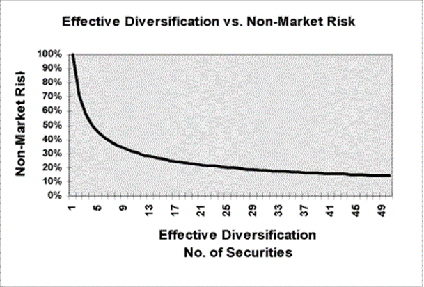 Twenty-five (25) is the magic number to diversify away the lion’s share of your stock-specific risk (according to a popular 1970 study by Fisher and Lorie).