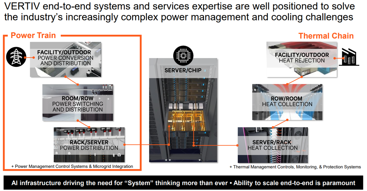 Vertiv designs, manufactures, and services critical digital infrastructure technologies and lifecycle services for data centers, communication networks, and commercial and industrial environments. And as you can see in the image below, the company is well positioned to benefit from the industry’s growing demand and challenges (more on growth later).