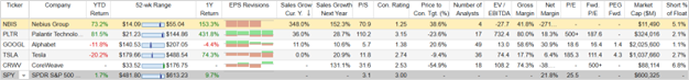 I’ll have more to say about Nebius in the near future, but for the time being, you can see how it compares to other top AI companies (in the following table) based on various valuation metrics (and more).