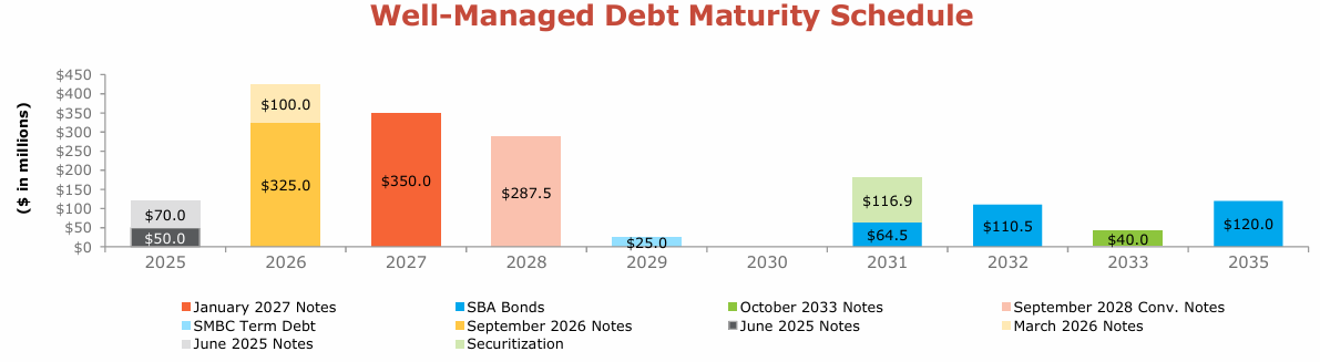 Debt Maturities are another risk as Hercules has significant maturities (that will most likely need to be refinanced) in 2026-2028.